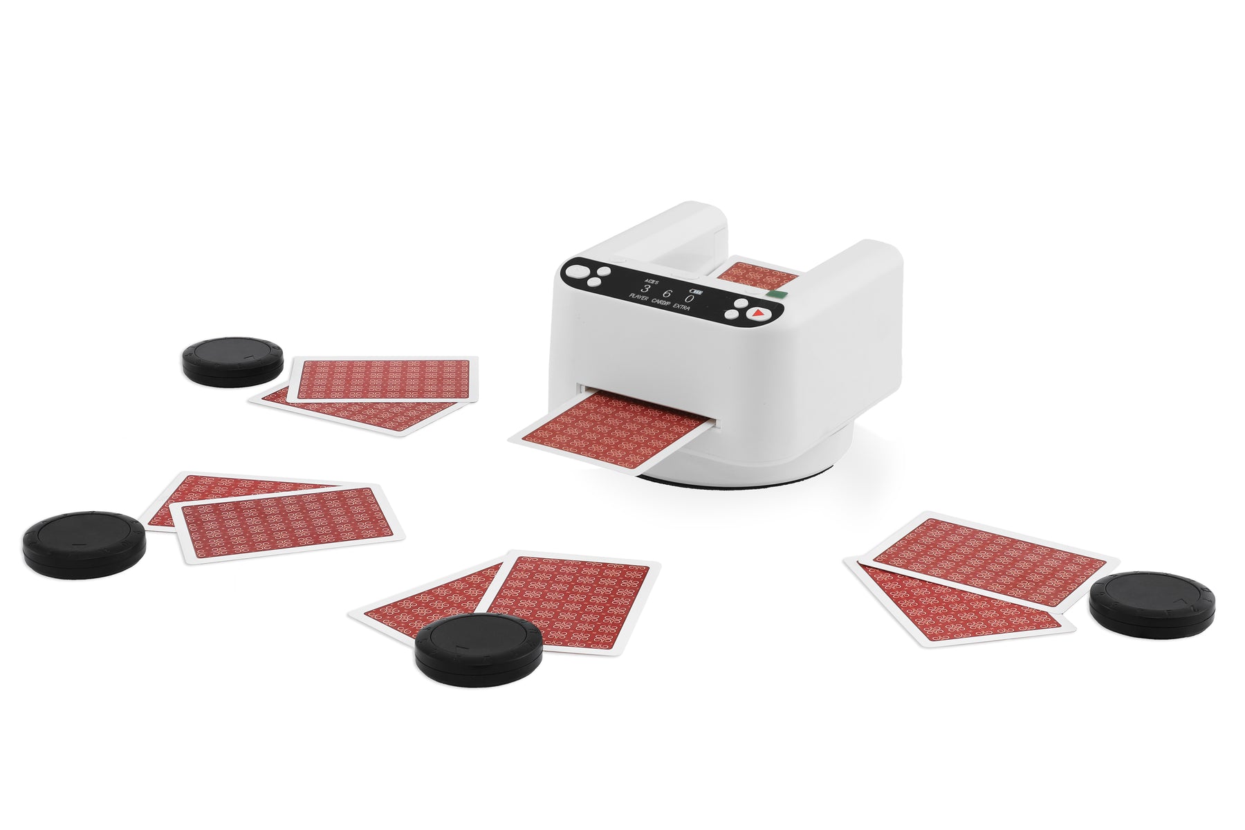 Built for 1 to 12 players, it lets you customize everything — from how many players are in the game to how many cards each one gets. With space for up to 3 decks at once and automatic dealing, it’s perfect for long sessions without interruptions.
